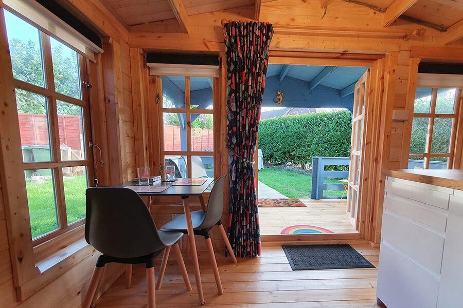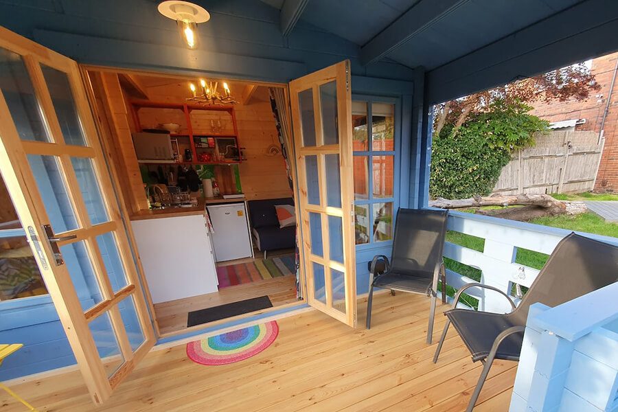 A possibilidade de partilhar a aura emanada por esta magnífica estrutura incentivou os proprietários a criar um anúncio no Airbnb e a iniciar também um negócio de alojamento local de sucesso. Um estúdio independente com um elegante terraço coberto é uma excelente opção para um negócio de alojamento local de curta duração. Esta casa de jardim encantadora, localizada a cerca de 30 minutos a pé e de comboio do centro de Londres, é muito apreciada pelos visitantes da cidade que a escolhem como local de estadia. Para quem deseja experimentar a sensação da vida no campo, a hospitalidade dos habitantes locais e ficar não muito longe da agitação da cidade e das principais atrações turísticas, o Blue Haven Studio Lodge é o local perfeito!