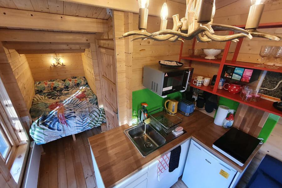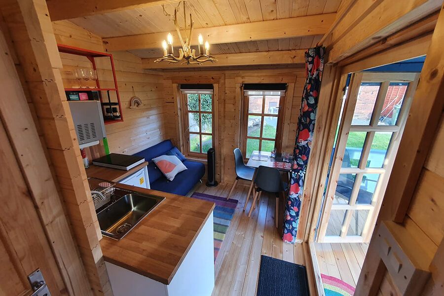 Quando se trata de decorar o interior e o exterior da cabana do jardim, as possibilidades são extraordinárias! O AJ partilhou connosco que dedicou muita consideração, tempo e esforço ao design do espaço interior do Blue Haven Studio Lodge – passou meses a trabalhar na melhor disposição para a cozinha e casa de banho, a decidir onde colocar as paredes internas e a tentar encaixar uma cama confortável no recanto que construiu com pedaços de madeira que sobraram da casa de jardim – que bela forma, sustentável, criativa e ecológica de usar as sobras de madeira! Estamos verdadeiramente inspirados pela dedicação e amor que foram colocados na organização e decoração do interior desta casa.